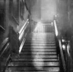 One of the most famous examples is the Brown Lady of Raynham Hall (1936). The photograph shows a translucent figure descending a staircase, long dismissed as shadow alignment or exposure issues. Yet witnesses had described the same apparition decades earlier, often carrying a lantern down those stairs.